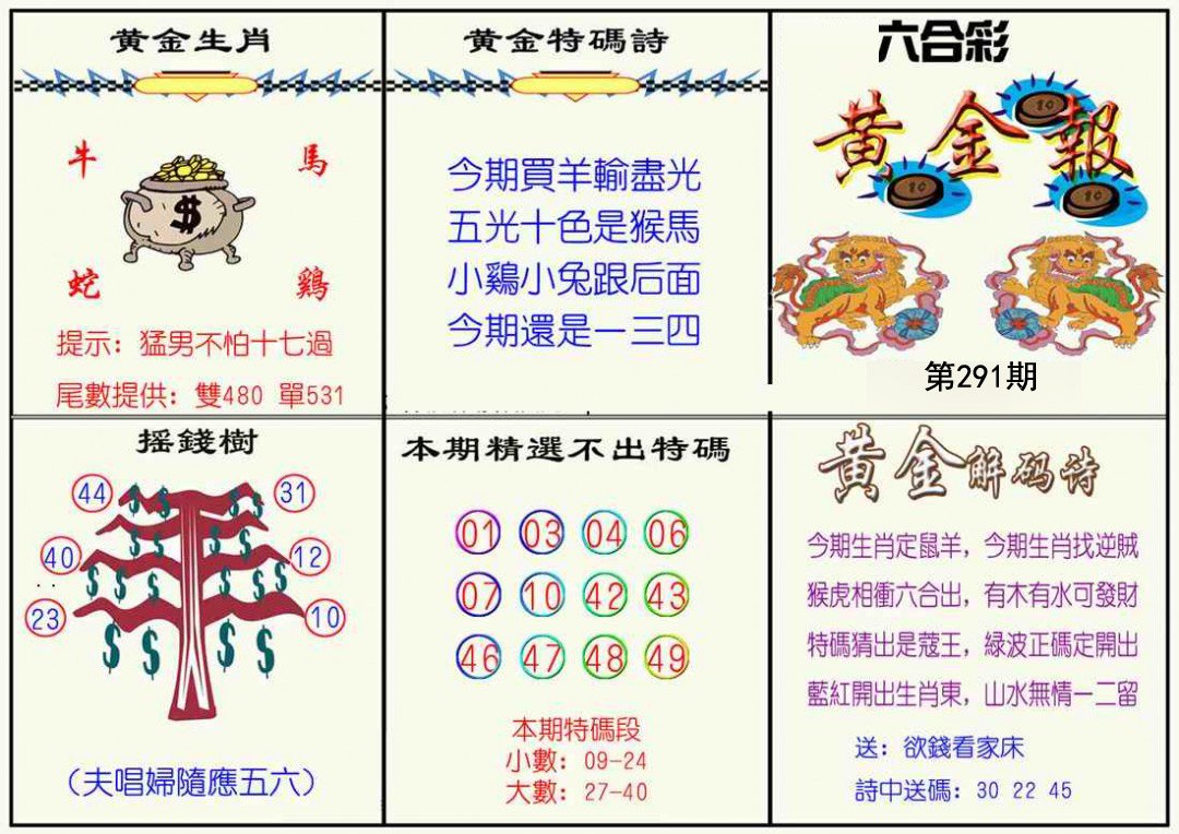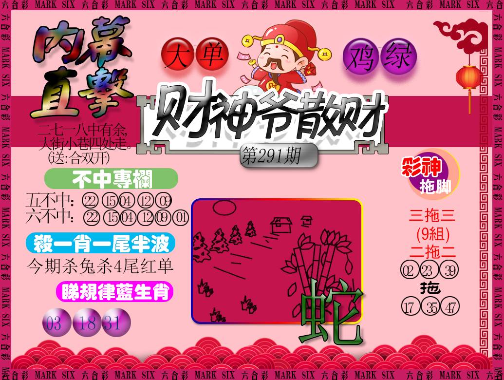 291期【欲钱看门神 】 291期推荐特肖:(虎马鸡猪) 開:?00 |